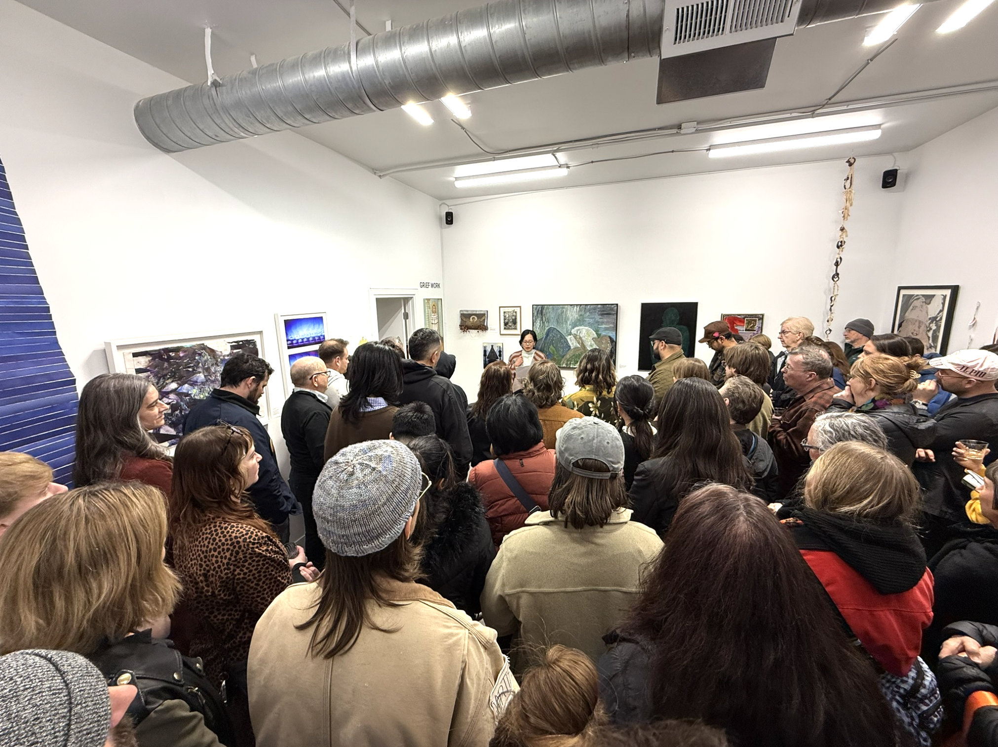 I'm hearing familiar themes of this necessity of togetherness – how we seek that togetherness against structures or conditions that might make all this feel really impossible. How does this gallery either shift, conflict with, or challenge our cultural stories about what we do with grief? Where is it allowed to be? Who's allowed to grieve?